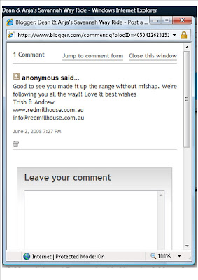 Dean and Anja Clapp are riding a tandem bicycle all the way from Cairns to Broome .... a belated honeymoon after marrying in June 2007. Dean will celebrate his 60th birthday along the Savannah Way. Starting from their home in Cairns on June 1 2008 and finishing up in Western Australia sometime in August. Dean owns "Crocodile Express" nature cruises based on the Daintree River which he has operated sucessfully for 22 years. Anja operates "Body Mechanix" natural therapies and remedial massage and recently completed her diploma in remedial massage, myofascial / craniosacral. No doubt, Dean will take full advantage to keep his motor tuned.