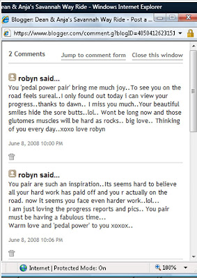 Dean and Anja Clapp are riding a tandem bicycle all the way from Cairns to Broome .... a belated honeymoon after marrying in June 2007. Dean will celebrate his 60th birthday along the Savannah Way. Starting from their home in Cairns on June 1 2008 and finishing up in Western Australia sometime in August. Dean owns "Crocodile Express" nature cruises based on the Daintree River which he has operated sucessfully for 22 years. Anja operates "Body Mechanix" natural therapies and remedial massage and recently completed her diploma in remedial massage, myofascial / craniosacral. No doubt, Dean will take full advantage to keep his motor tuned.